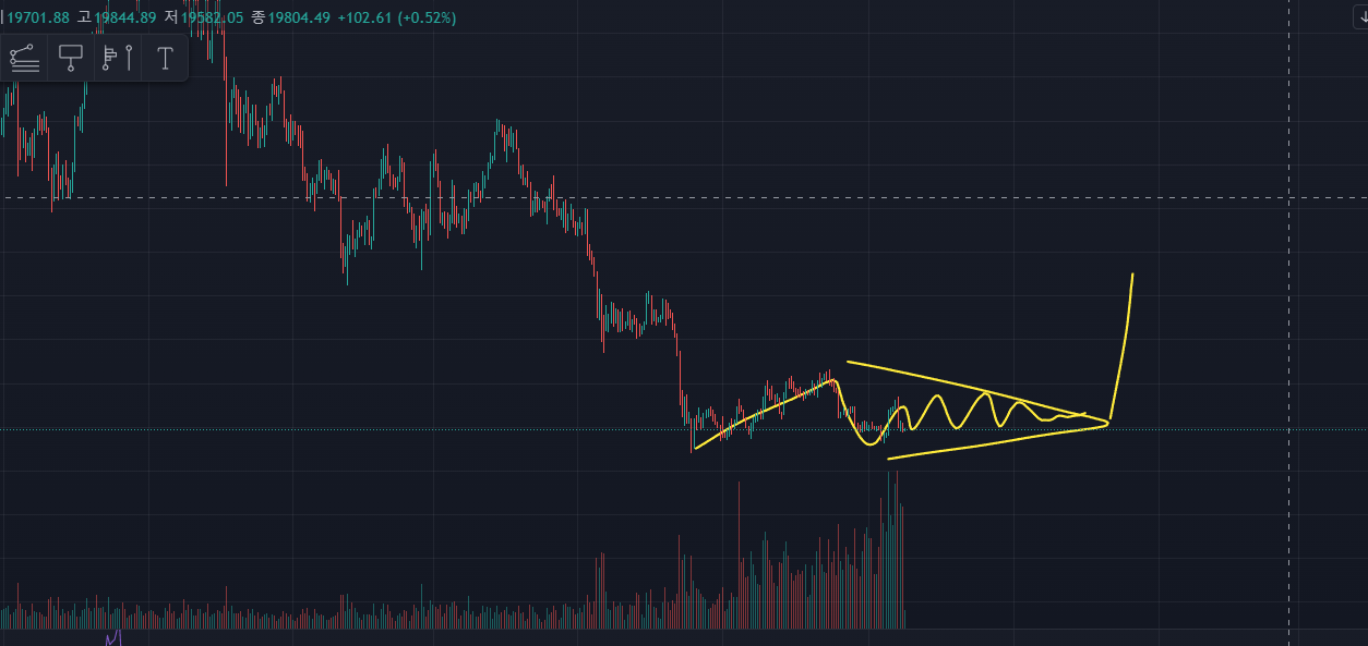 마지막으론 가장 가능성이 적어 보이는 시나리오는 현재 조정에서 지지받고 임펄스로 상승하는 것이다.